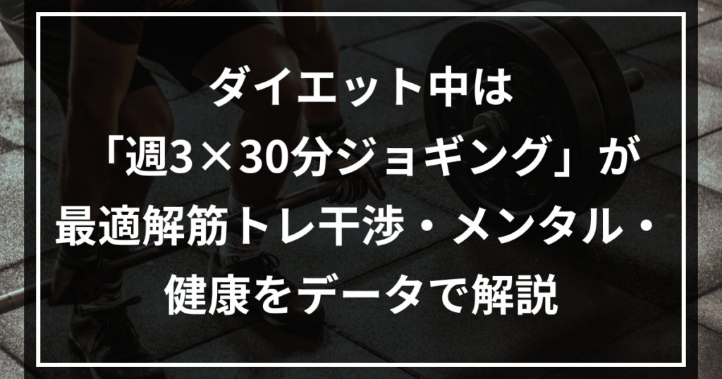 結論から。減量期は「週3回×30分の中強度ジョギング」が最適解です。なぜなら、体重は落ちやすく、メンタルは整い、しかも筋トレと別日に分ければ干渉はほぼ無視できるからです。とはいえ、やり過ぎは非効率。だからこそ“適量”に狙いを定めます。 有酸素は...